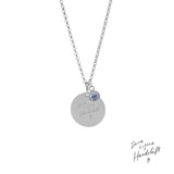Plättchen Zirkonia Geburtsstein Halskette mit Gravur. Eigene Handschrift, Foto, Fußabdruck. Silber