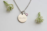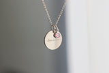 Plättchen Zirkonia Geburtsstein Halskette mit Gravur. Herzchen. Silber